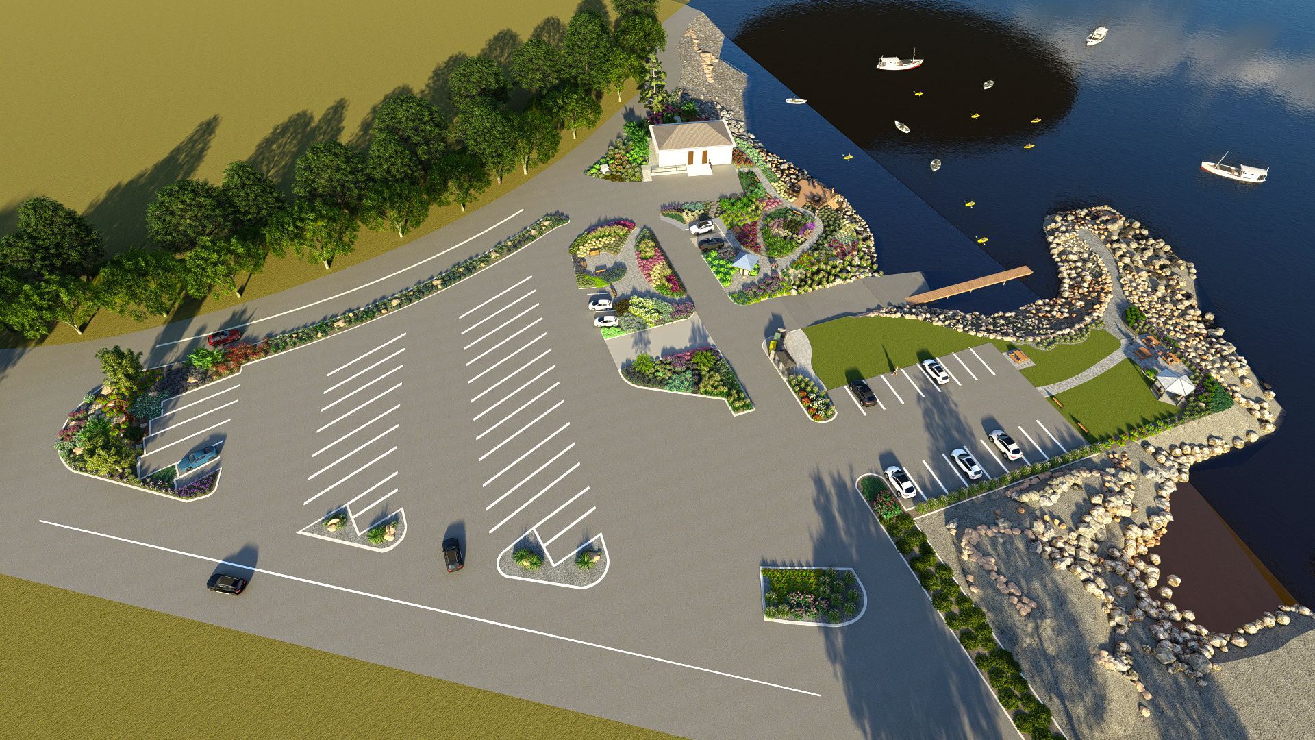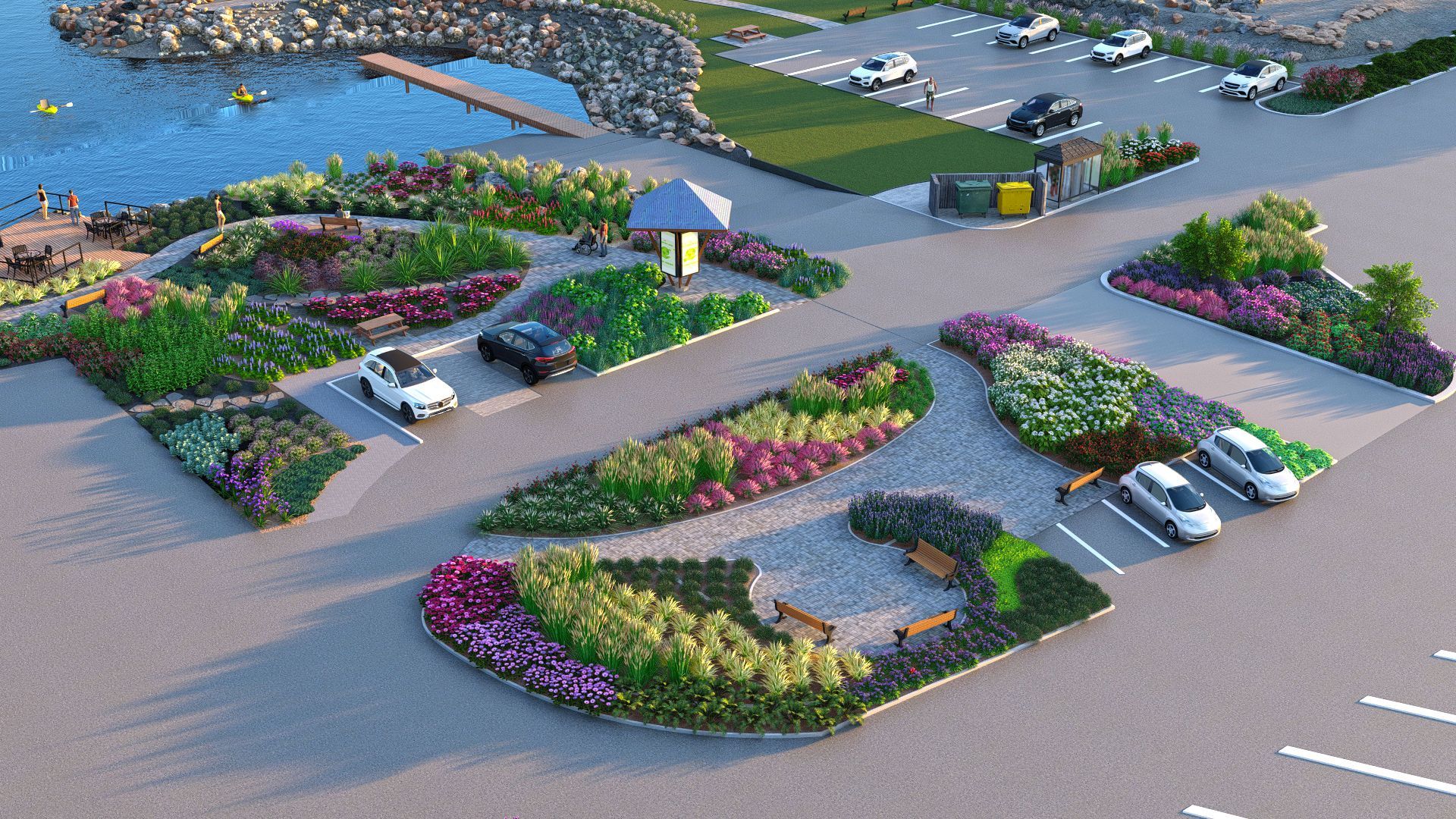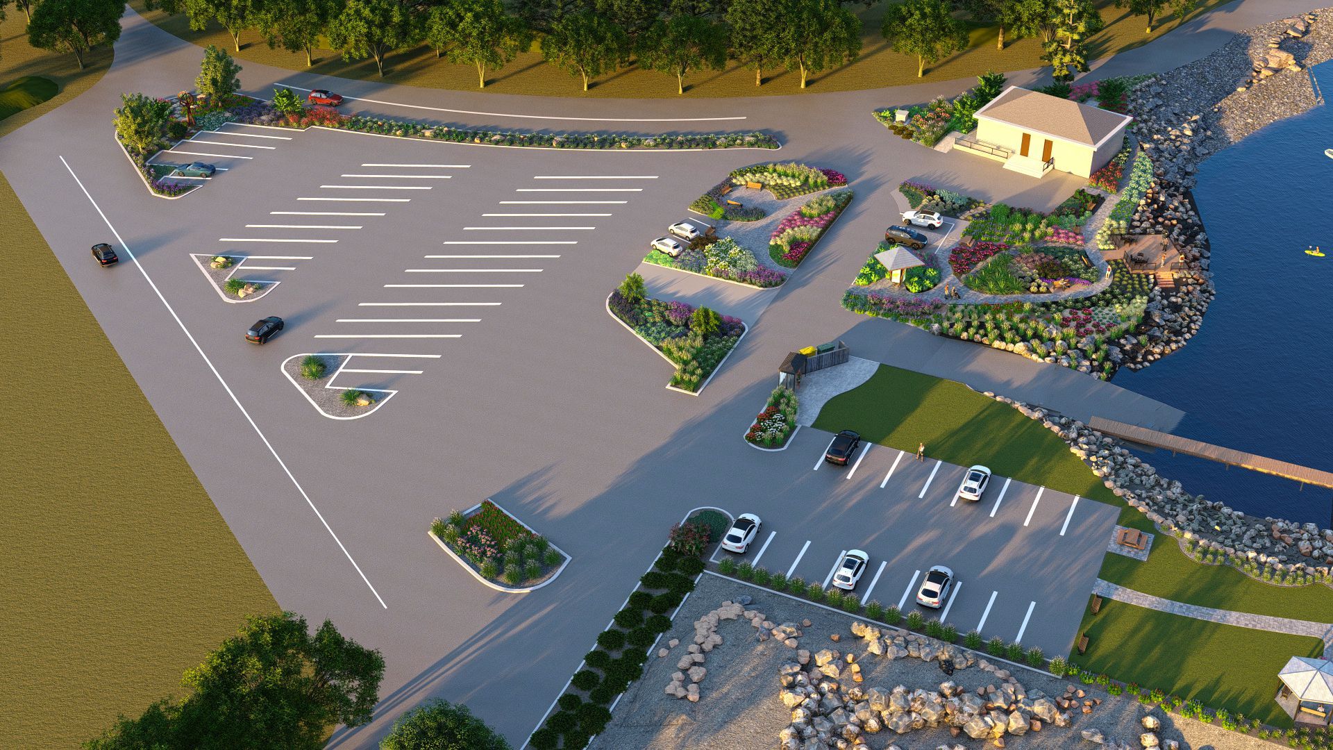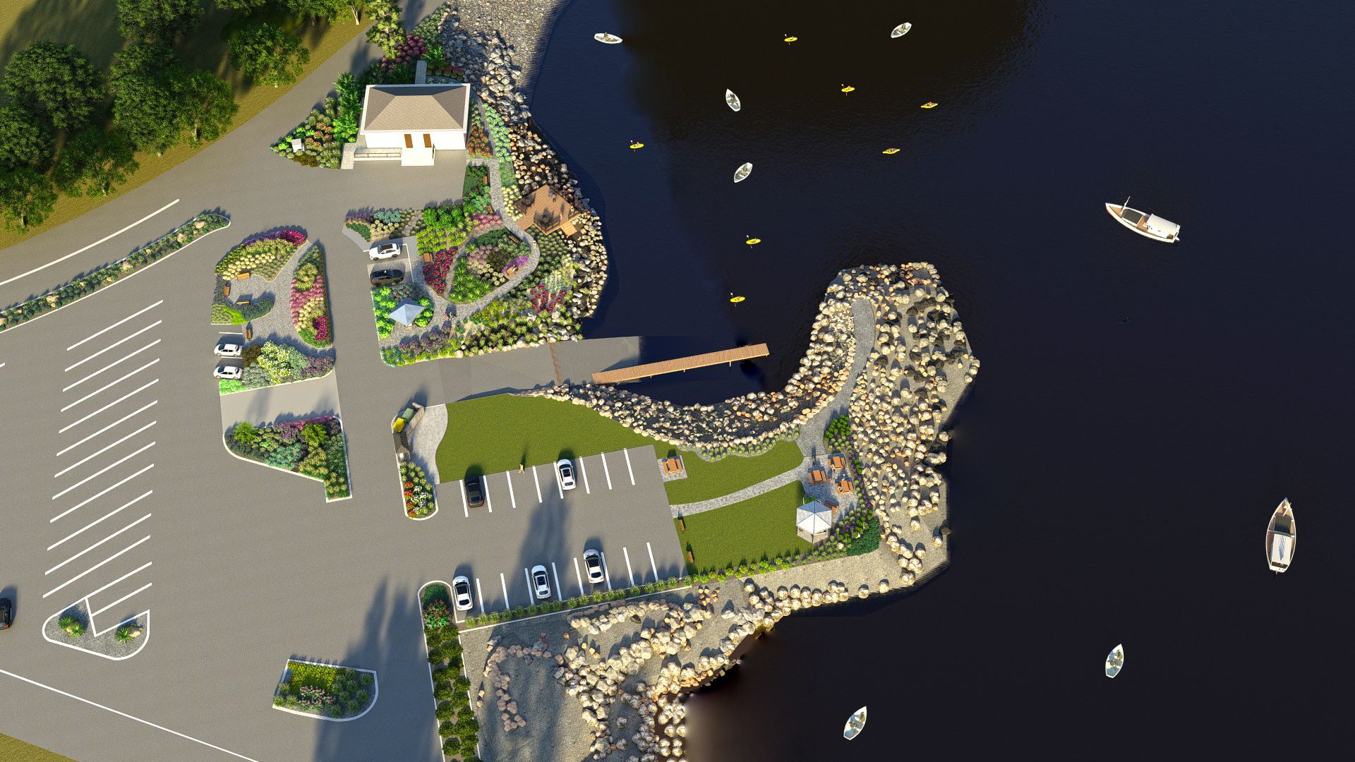 A conceptual plan was created by Roger Miller, Chairman of the Netarts Enhancement Committee (and a former landscape designer). The goal of the plan is to add landscaping, educational opportunities, and functionality to the areas surrounding the Boat Launch and parking lot. Several gardens, consisting largely of native plants, are envisioned for existing open planting areas. A large sitting area and gazebo will provide residents and visitors with space for picnics, open-air festivals, and concerts. New ADA-compliant pathways will allow easy access to the botanical gardens and sitting areas. The beautiful existing benches will remain; no parking spaces will be lost. The new plantings will be installed and maintained by members of the Netarts community.