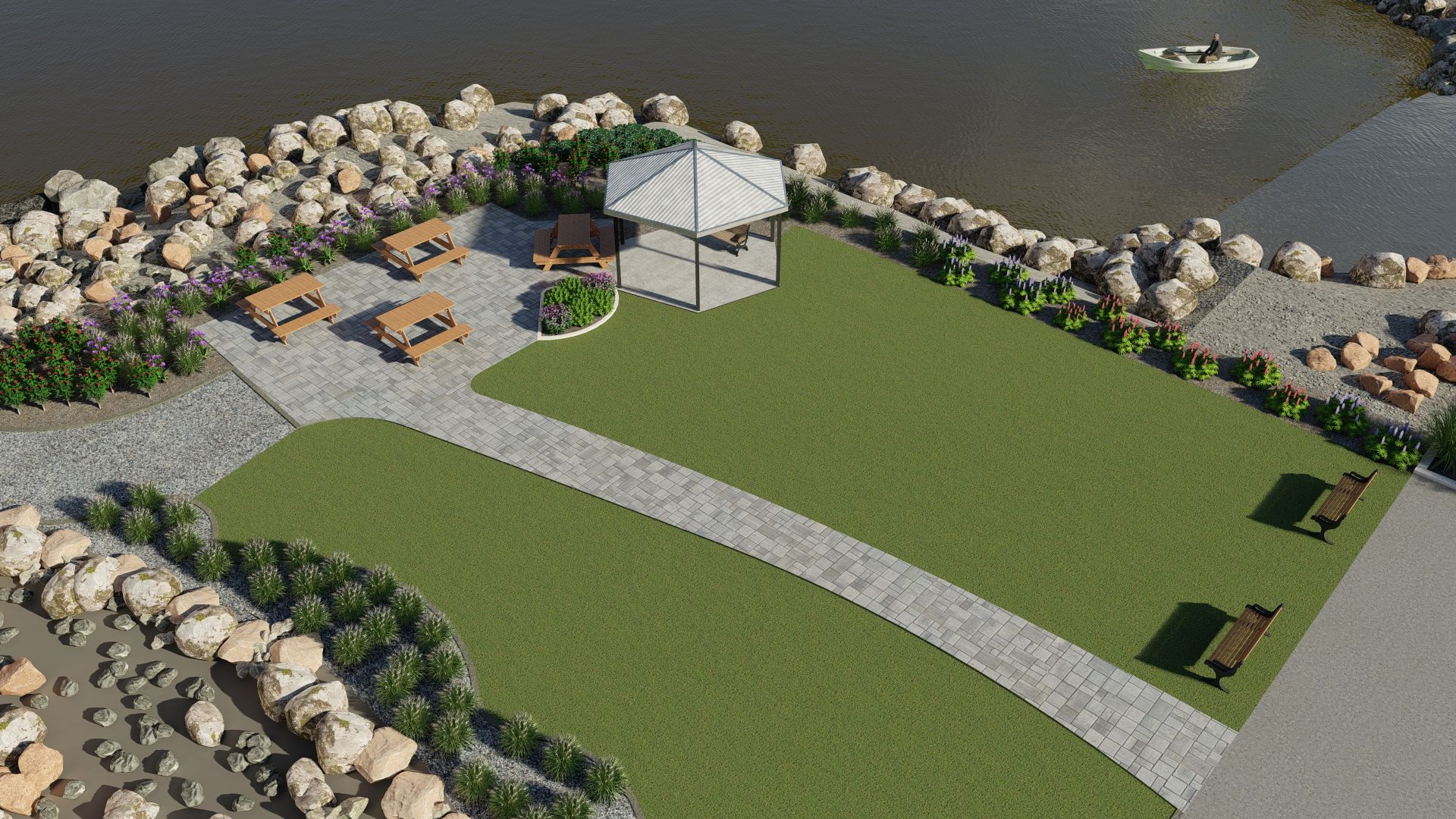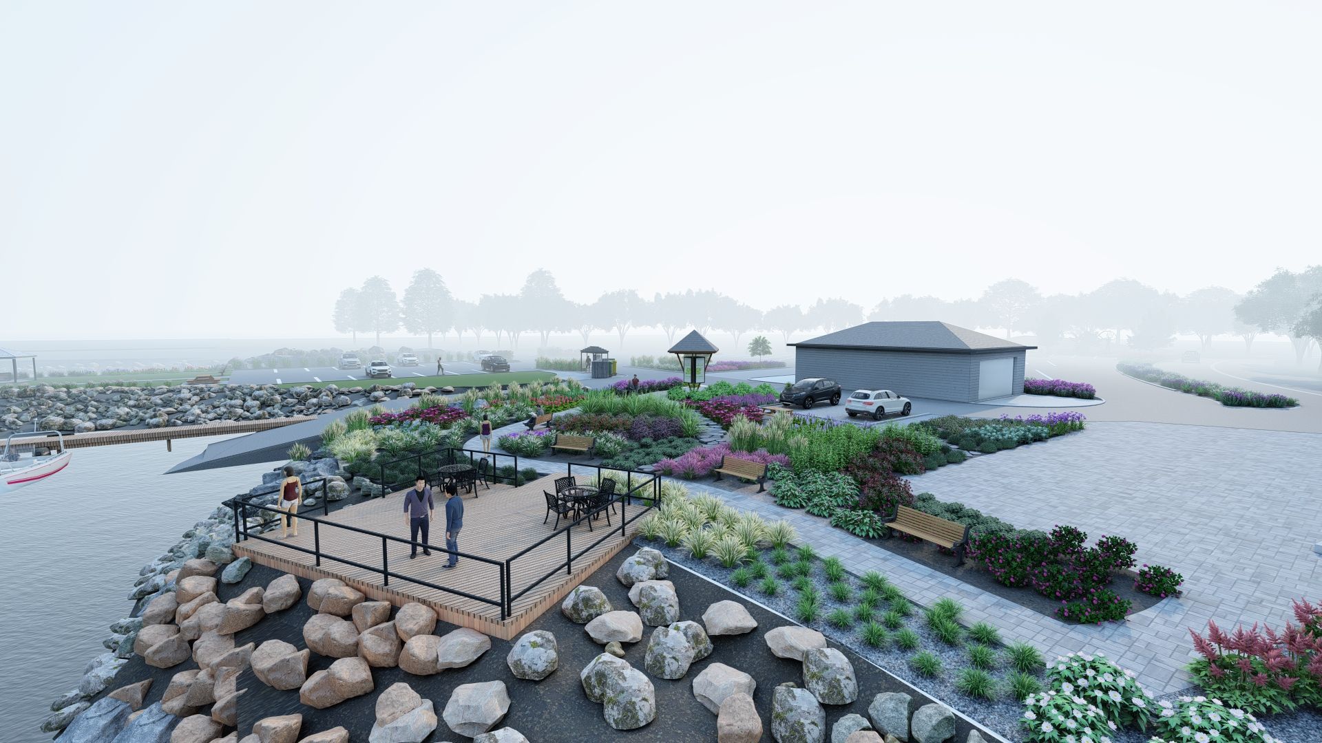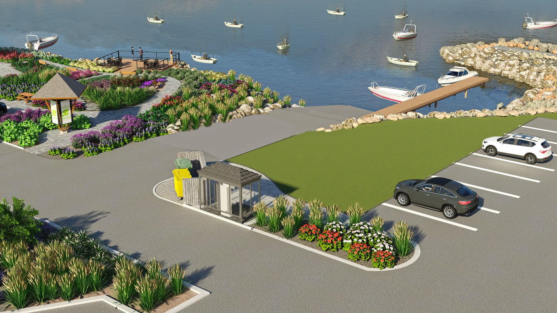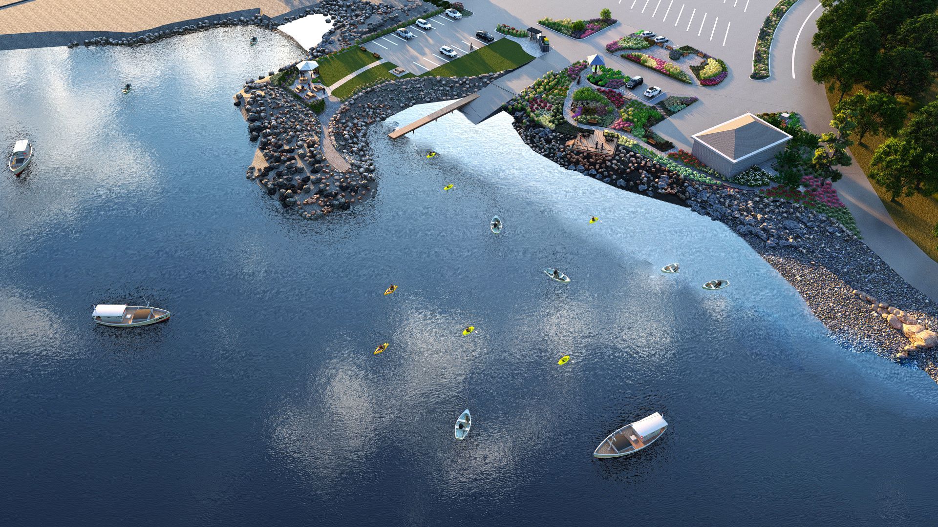 A conceptual plan was created by Roger Miller, Chairman of the Netarts Enhancement Committee (and a former landscape designer). The goal of the plan is to add landscaping, educational opportunities, and functionality to the areas surrounding the Boat Launch and parking lot. Several gardens, consisting largely of native plants, are envisioned for existing open planting areas. A large sitting area and gazebo will provide residents and visitors with space for picnics, open-air festivals, and concerts. New ADA-compliant pathways will allow easy access to the botanical gardens and sitting areas. The beautiful existing benches will remain; no parking spaces will be lost. The new plantings will be installed and maintained by members of the Netarts community.